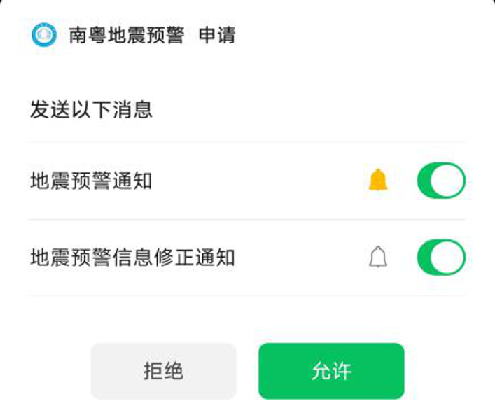 ①微信搜索:“南粵地震預警”小程序