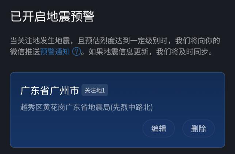 ④成功添加關注地,開啟地震預警